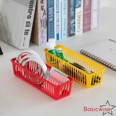 These colorful plastic baskets offer a practical storage solution with a clean, minimalist aesthetic that suits a variety of interior styles. Their rectangular form fits seamlessly into shelving units, cubbies, or drawers, making them an excellent choice for keeping spaces streamlined and uncluttered. Whether used individually or grouped, they help create a neat, visually appealing environment that promotes productivity and order. Their open design encourages quick sorting and spontaneous use, making them especially helpful in fast-paced or creative settings. From sorting loose cords and charging cables to gathering makeup items or DIY essentials, these baskets adapt effortlessly to your daily needs. Their unobtrusive profile ensures they blend in without overwhelming the space, while still serving as an effective organizing tool. These baskets are a smart addition to any area that benefits from portable, flexible storage. Whether you’re setting up a mobile supply station or rearranging your workspace, their slim shape and lightweight build make repositioning simple. They serve as an ideal companion for anyone who values both functionality and tidy visual appeal in their everyday organization system.