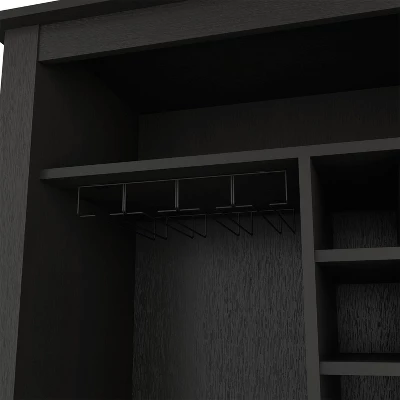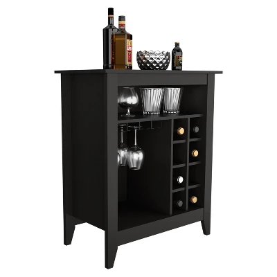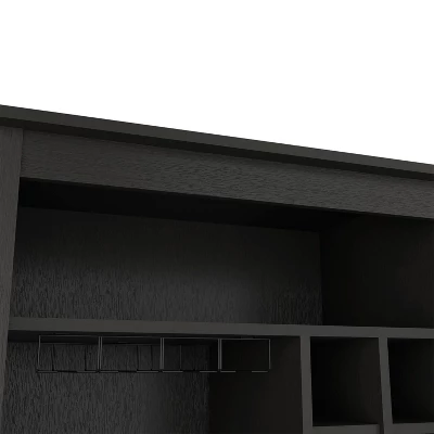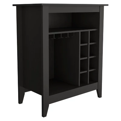 Discover the Gulches Black Bar Cabinet, a perfect blend of elegance and functionality. Featuring one open drawer, one open shelf, and six built-in wine racks, this cabinet offers ample storage for your favorite beverages and glassware. Crafted from FSC-certified materials, it ensures both style and sustainability for your home.