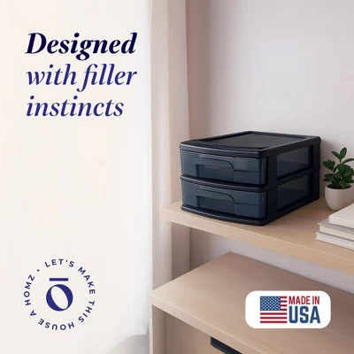 Introducing the Homz 2-Drawer Cart Organizer, the perfect solution for storing and organizing small to medium-sized items in any room in your home or office. This versatile cart has 2 spacious, smoke-tinted plastic drawers that are easy to remove whenever you need to transport or reorganize the contents. The recessed lid provides a functional space for school accessories, office supplies, paperwork, bathroom items, and more, helping you stay organized and efficient. This medium storage cart measures 12.5″L x 14.25″W x 9″H, offering ample storage space while maintaining a compact footprint, perfect to fit next to walls or in between furniture. Whether you’re looking to tidy up your bedroom, dorm room, laundry room, kitchen, pantry, bathroom, office, garage, or any other space, this cart is the ideal organizational solution. Use it for personal items, shoes, art supplies, seasonal decorations, and more! HOMZ believes that no clutter should be left behind. Our wide collection of storage containers is durable, efficient, space-saving, and some would even say sexy. Pick up a few containers to tame your worst mess and bring order to the chaos. Elevate your home with the Plastic Storage Cart.
