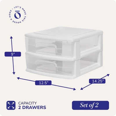 Introducing the Homz 2-Drawer Cart Organizer, the perfect solution for storing and organizing small to medium-sized items in any room in your home or office. This versatile cart has 2 spacious, clear plastic drawers that are easy to remove whenever you need to transport or reorganize the contents. The recessed lid provides a functional space for school accessories, office supplies, paperwork, bathroom items, and more, helping you stay organized and efficient. This medium storage cart measures 12.5″L x 14.25″W x 9″H, offering ample storage space while maintaining a compact footprint, perfect to fit next to walls or in between furniture. Whether you’re looking to tidy up your bedroom, dorm room, laundry room, kitchen, pantry, bathroom, office, garage, or any other space, this cart is the ideal organizational solution. Use it for personal items, shoes, art supplies, seasonal decorations, and more! HOMZ believes that no clutter should be left behind. Our wide collection of storage containers is durable, efficient, space-saving, and some would even say sexy. Pick up a few containers to tame your worst mess and bring order to the chaos. Elevate your home with the Plastic Storage Cart.