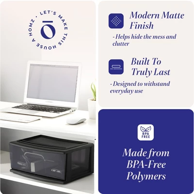 Introducing the Homz 1-Drawer Cart Organizer, the perfect solution for storing and organizing small to wide body-sized items in any room in your home or office. This versatile cart has 1 spacious, smoke-tinted plastic drawer that is easy to remove whenever you need to transport or reorganize the contents. The recessed lid provides a functional space for school accessories, office supplies, paperwork, bathroom items, and more, helping you stay organized and efficient. This wide-body storage cart measures 21.5″L x 15″W x 9″H, offering ample storage space while maintaining a compact footprint, perfect to fit next to walls or in between furniture. Whether you’re looking to tidy up your bedroom, dorm room, laundry room, kitchen, pantry, bathroom, office, garage, or any other space, this cart is the ideal organizational solution. Use it for personal items, shoes, art supplies, seasonal decorations, and more! HOMZ believes that no clutter should be left behind. Our wide collection of storage containers is durable, efficient, space-saving, and some would even say sexy. Pick up a few containers to tame your worst mess and bring order to the chaos. Elevate your home with the Plastic Storage Cart.
