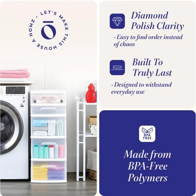 - PLASTIC STORAGE CART: Perfect the art of hiding your hoard with the HOMZ storage drawer set. This plastic cart is made to fit anywhere you need organizing power, whether at home or work.