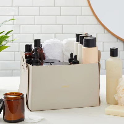 Whether you’re holding cosmetic items, office supplies, or electronics, these collapsible PU leather shelf baskets are an excellent solution for household and workspace storage. Our decorative storage bins have two handles and can be folded flat when not in use for convenient storage, portability, and ease of use. The PU leather storage basket can hold magazines, remotes, DVDs, makeup, chargers, shampoo and conditioner bottles, and toys. With its minimalistic design, it looks good in almost any setting.