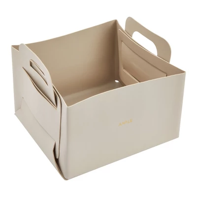 - High-Quality: Each sturdy PU leather storage basket features handles and folds flat when not in use, perfect for easy storage and even on-the-go organization