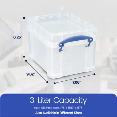 Keep your tunes within arm’s reach and your movies at the ready with the 12-pack Really Useful Box 3-Liter Snap Lid Storage Bin, a versatile solution for music and movie enthusiasts. Imagine when you’re cruising along, your favorite album ends, and you crave a seamless CD swap. Readily accessible for your long drives, these 3-liter boxes conveniently house 18 CDs so there will be no more rummaging in cramped compartments. Its sturdy lid and locking handles ensure your collection stays safe and secure. Not just for music buffs, these boxes transform into a haven for your film library, accommodating 10 DVDs snugly. Crafted from durable plastic in a crystal-clear hue, it’s not just about music and movies. Think beyond and discover its versatility when serving as a home for rubber stamps or a neat organizer for plumbing accessories. These storage gems aren’t limited to melodies and movies but are also ideal office or home storage companions, offering a spacious 3-liter capacity. The clear construction lets you effortlessly locate your stored items, while the reinforced bottom guarantees stability and strength. Stack them up securely thanks to the recessed lid and lip design.Whether safeguarding office essentials or decluttering your home, the 12 packs of 3-liter Snap Lid Storage Bins from Really Useful Box offer not just space but also reliability in safeguarding your prized possessions. Welcome a clutter-free life with a touch of convenience and organization.