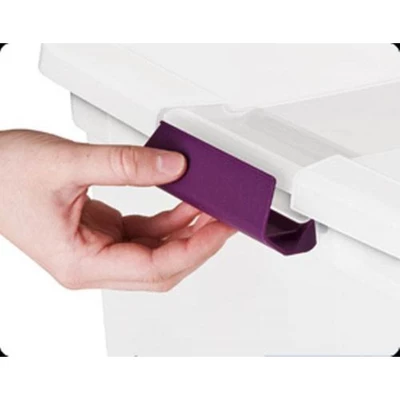 The 66 Quart ClearView Latch Box features ergonomic latches that attach the lid securely to the base, yet are still easy to unlatch. The see-through base and lid allow contents to be easily identified from any angle, and multiple bases are able to stack on top of each other. This latch storage box is ideal for storing blankets and other bulky items around the home. Sterilite ClearView Latch Boxes feature contemporary styling with ergonomic, color coordinated latches. The see through design allows for easy viewing of items. Indexed lids allow containers to stack securely for efficient storage. Common lids are used on select sizes to simplify and improve organization. Latch color adds visual appeal to everyday assortment. – Contemporary style with ergonomic latches attach the lids securely to bases – Indexed lid allows multiple units to be stacked securely – See-thru lids and bases allow for easy viewing of contentWe are an authorized Sterilite dealer.