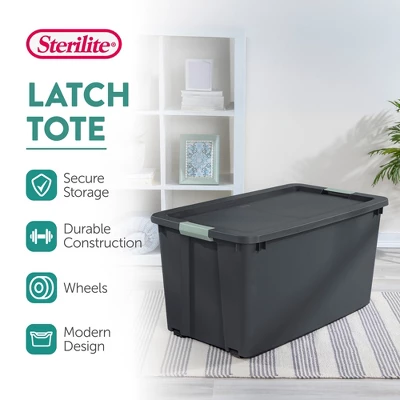 Wheeled storage is essential for hauling seasonal goods, extra clothes, and gardening supplies. Providing plenty of space for your holding of decorations, seasonal items, and shoes, the Sterilite Wheeled Latching Storage Tote allows you to stow away all your possessions with ease. With a 45-gallon capacity, the organizer container keeps your favorite spaces, rooms, or offices organized by providing maximum versatility. The tote is equipped with wheels, making it the ideal portable solution, even for heavier loads. House sporting gear, camping supplies, bedding, seasonal items, and more in these large capacity totes, while the opaque base allows contents to be out of sight for maximum protection. A durable construction makes these an ideal solution for garage, basement, or attic storage needs. Equipped with indexed lids, multiple totes can be stacked neatly on top of each other for efficient use of vertical storage space. Built with contoured end panels and robust latches, these storage bins feature a secure lid attachment while offering extra security to ensure the contents inside stay in place. The handles on each side allow you to move the tote from place to place conveniently. Measuring 36.13 inches long, 21 inches wide, and 18.63 inches tall, the storage possibilities become endless. Whether you need to organize your home bedroom, office, or mudroom, the 45-gallon container with wheels will be the ideal solution you’ve been looking for. Declutter the countertops around you with the Latching Storage Tote from Sterilite.