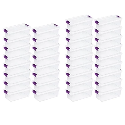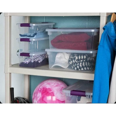 Organize your closet, office, craft supplies, or kid’s playroom, putting everything in its proper place with the help of Sterilite 6-Quart Plastic ClearView Latch Box Storage Container Totes. Keep yourself organized with these storage totes. Ideal for storing shoes, toys, crafts, and other small items around the home, these bins conveniently fit on 16-inch wire shelving making them ideal for closet organization. The clear base and lid allow contents to be easily identified from any angle. With color-accented latches that secure the lid to the base, you’ll be able to have peace of mind that your stored items are secure. The latches are easy to open and close for convenient access to your belongings and the indexed lids allow the totes to be neatly stacked on top of each other making efficient use of vertical storage space. The overall dimensions of these totes are 14.12 long by 7.75 wide by 4.87 inches high. Enjoy the contentment full organization can bring to your home with the 6-Quart Plastic ClearView Latch Box Storage Container Totes from Sterilite.