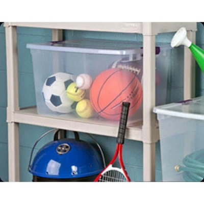 Organize your closet, office, craft supplies, or kid’s playroom, putting everything in its proper place with the help of Sterilite 64-Quart Clear Storage Tote, 6 Pack, and 66-Quart Clear Storage Tote, 6 Pack. The 12-pack of multi-sized totes is ideal for storing anything from sporting equipment to holiday decorations safely in the home, garage, or office. They can also be used for tidying up your out-of-season clothing, extra bedding, or winter coats. Whether you’re safely storing and organizing your linens, knick-knacks, or keepsakes, you can easily identify the contents from the outside thanks to the clear plastic design. Indexed lids allow boxes to be stacked securely maximizing vertical spacing. The 64-quart containers measure 22.75 by 16 by 13.50 inches and the 66-quart containers measure 23.62 x 16.38 x 13.25 inches fitting neatly on most closet or storage shelving. Durable and built for long-term storage, you can rest assured your items will remain safe from dust, dirt, or debris, even when stored in uninsulated spaces such as unfinished basements, garages, or exterior storage rooms. Enjoy the peace full organization can bring to your home with the 64-Quart Clear Storage Tote, 6 Pack, and 66-Quart Clear Storage Tote, 6 Pack from Sterilite.