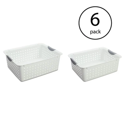 Bring total organization to your home storage system with the Sterilite Set of Ultra Plastic Storage Bin Baskets with Handles.This set of 12 multi-size plastic storage basket totes is ideal for organizing countertops, kitchen cabinets, pantries, and shelving around the home, featuring 6 large and 6 medium baskets. Store vegetables or boxed goods in your kitchen pantry supplies in your bathroom cabinet, or organize cleaning supplies under your sink. Easy to clean and maintain, with a smooth surface and vent holes, you’ll enjoy how easy it is to keep things neat and tidy around the house.The contoured handles allow for comfortable transporting, and the smooth finish is easy to clean. These storage containers create endless storage possibilities from discs and media to laundry to office supplies and more. The Sterilite storage baskets are ideal for garages, craft rooms, toys rooms, mudrooms, and anywhere else your home could benefit from simple storage solutions.Enjoy a new system of storage and household management with the Set of Ultra Plastic Storage Bin Baskets with Handles, 6 Large, and 6 Medium from Sterilite.
